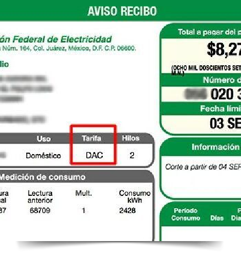 El tipo de tarifa la encuentras en la parte superior del recibo del lado derecho donde dice TARIFA.